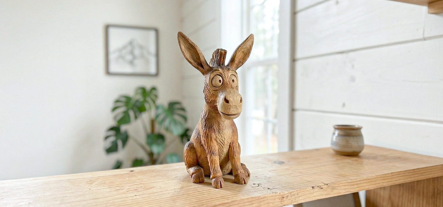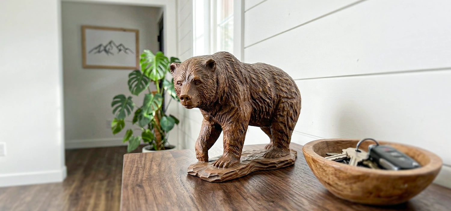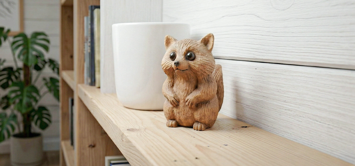 100% solid wood. 0% boring. Hand-carved companions for your shelf, mantel, or desk.
